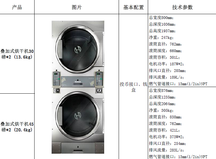 Huebsch雙層疊加烘干機